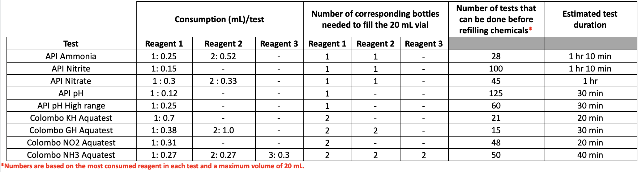 What is the estimated duration for each test brand and parameter for Freshwater? - ReefBot Pro